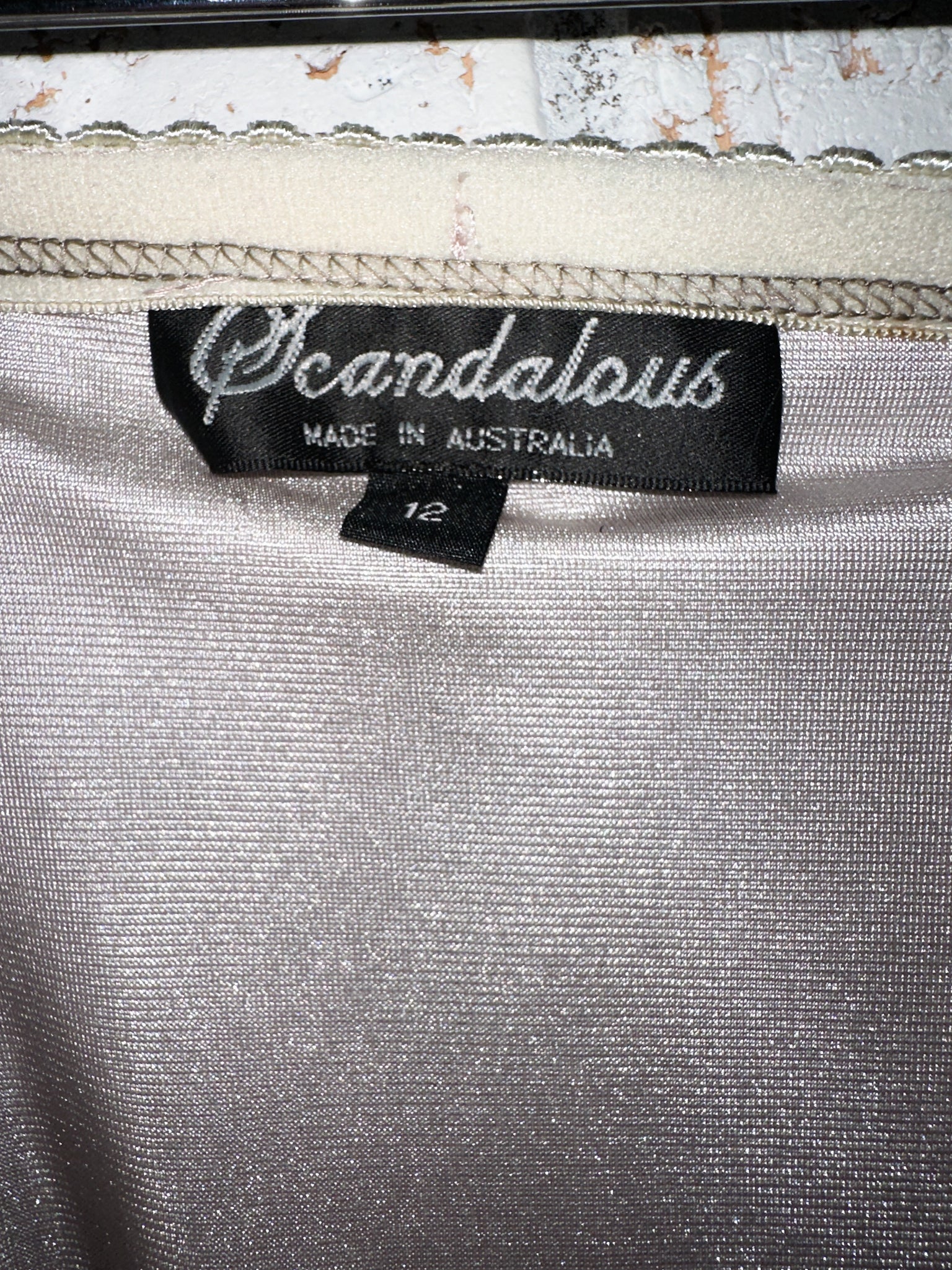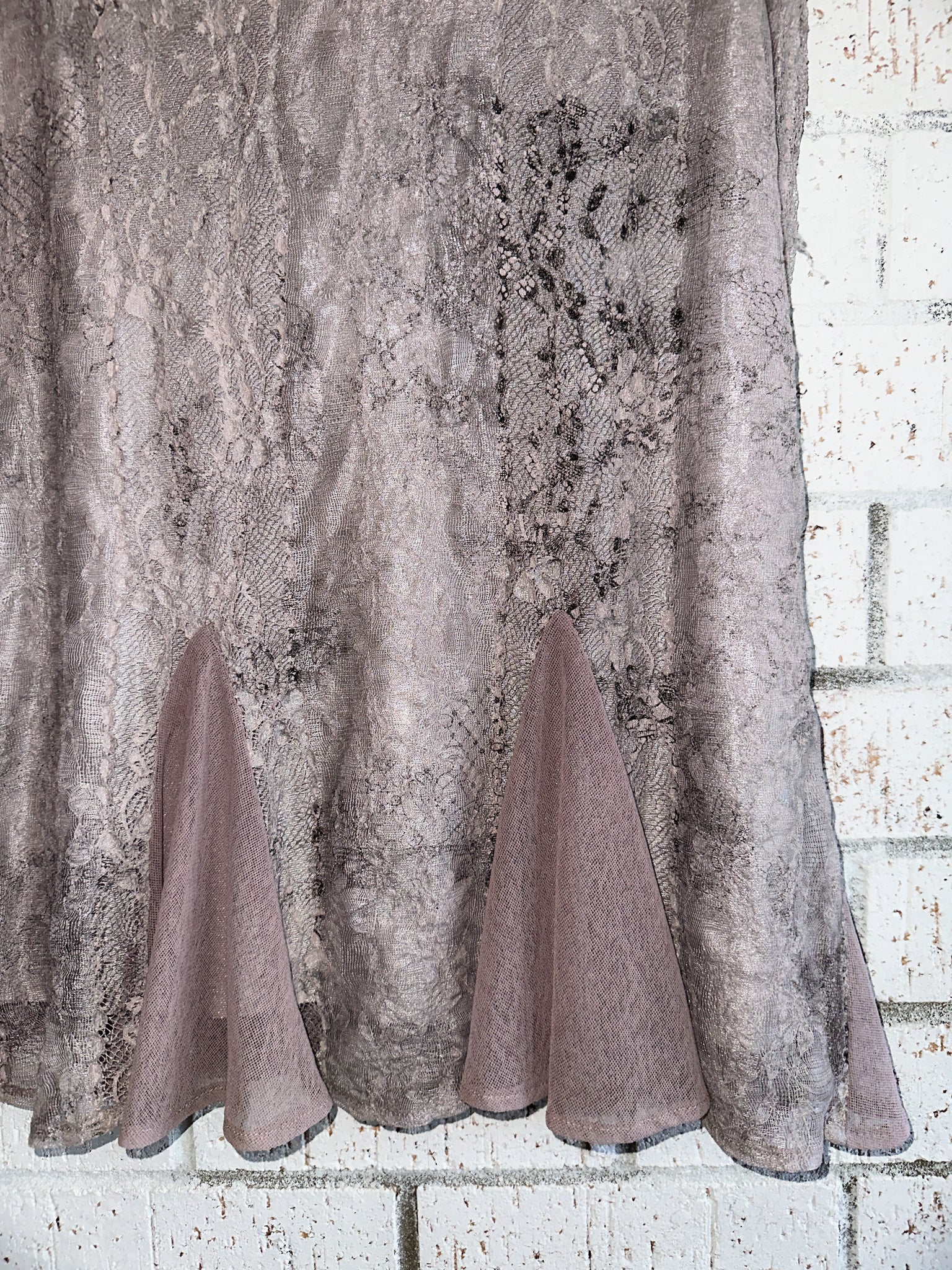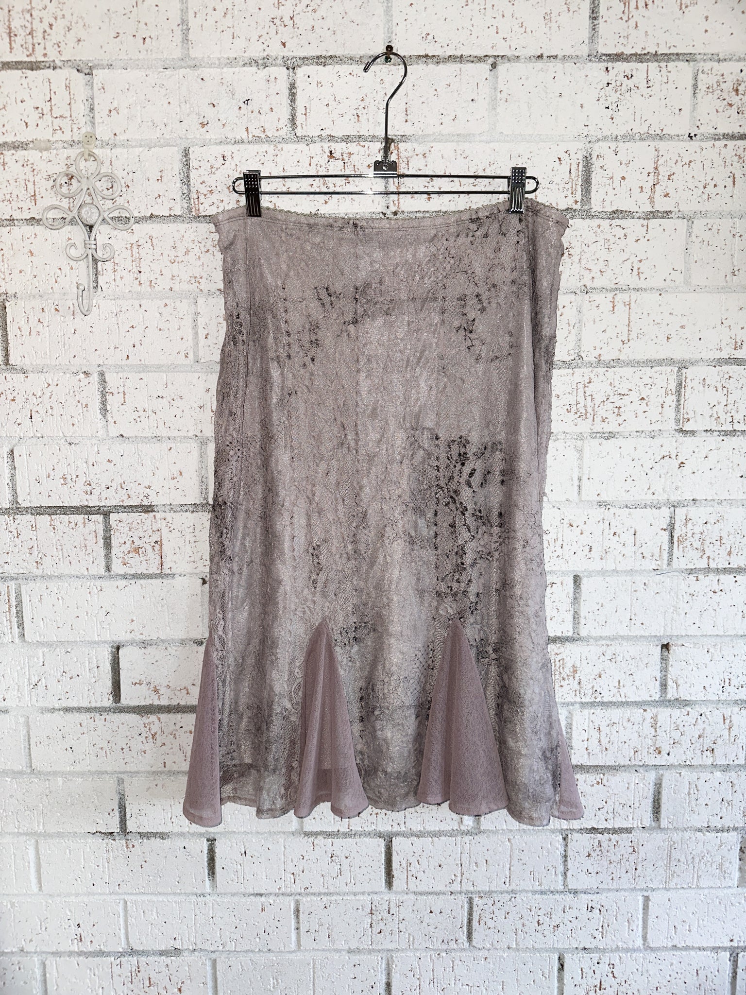 Vintage 1990s Scandalous Taupe Lace Panel Midi Skirt