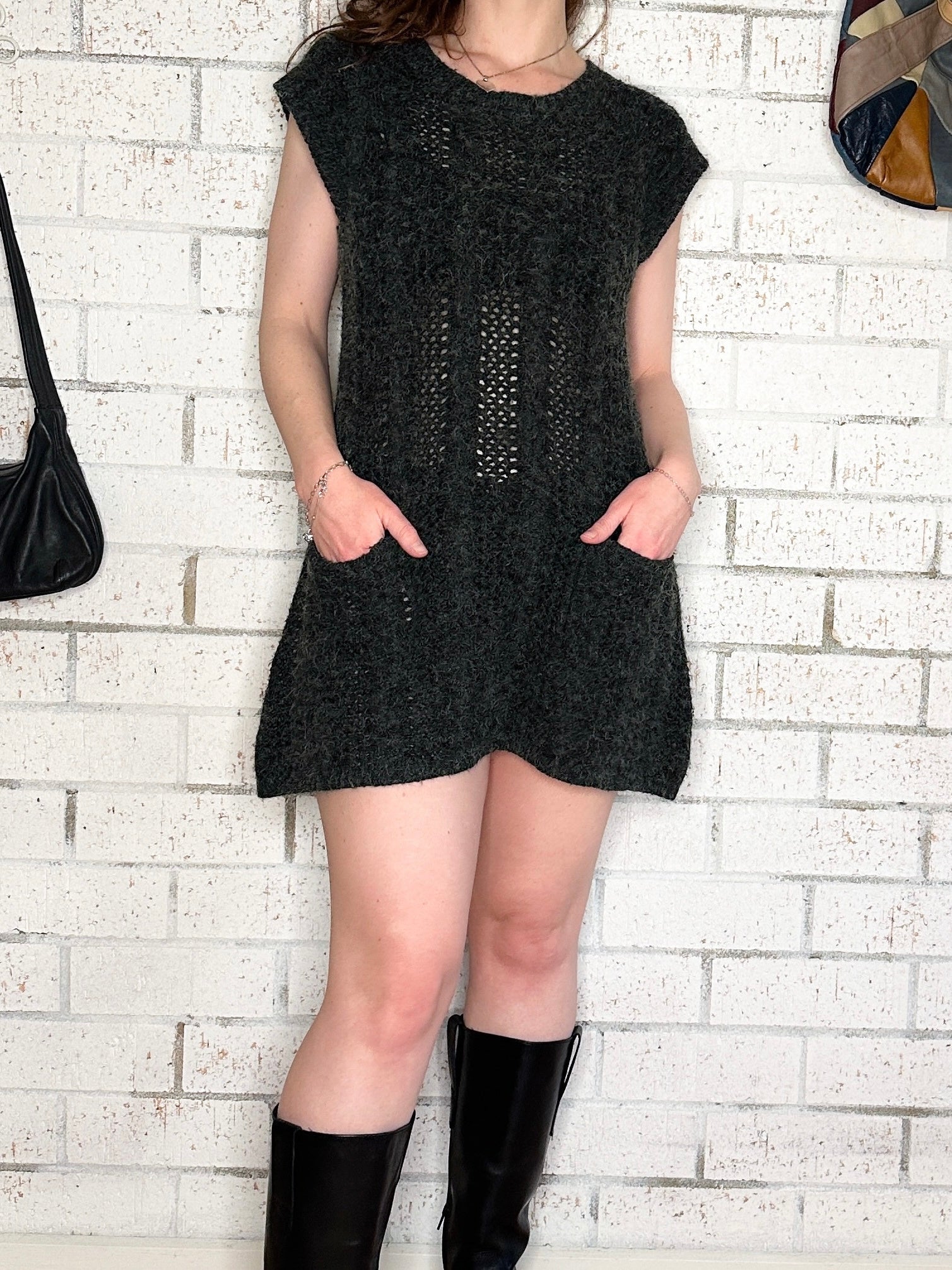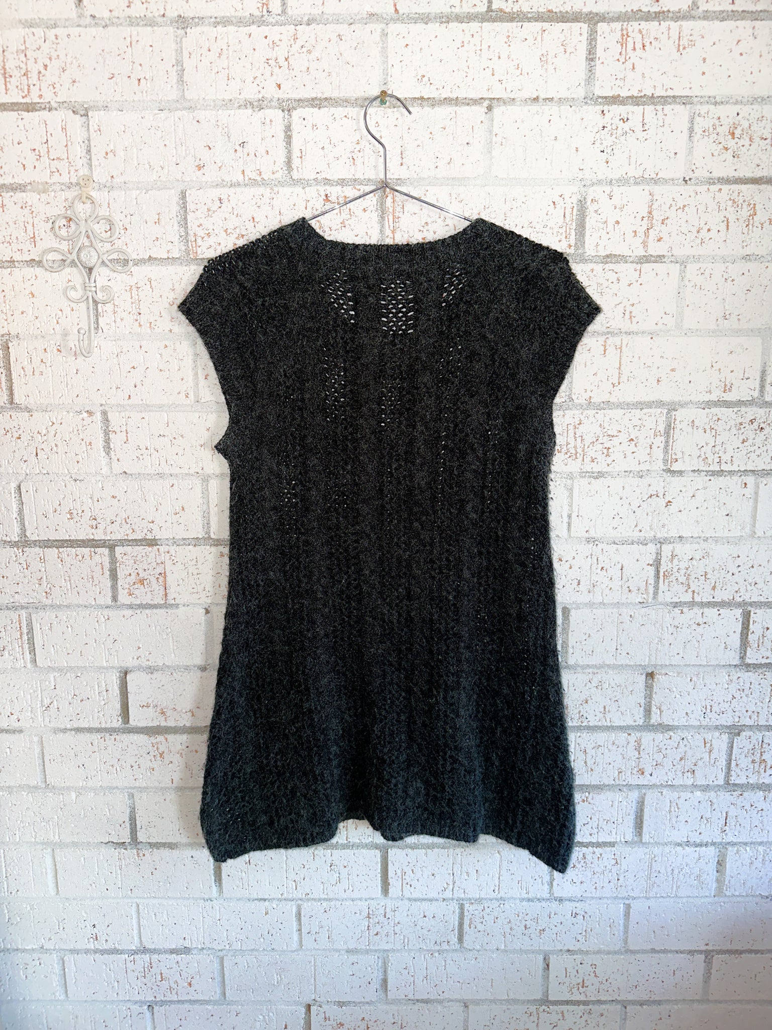 Vintage 2000s Charcoal Fuzzy Knit Sleeveless Tunic Dress